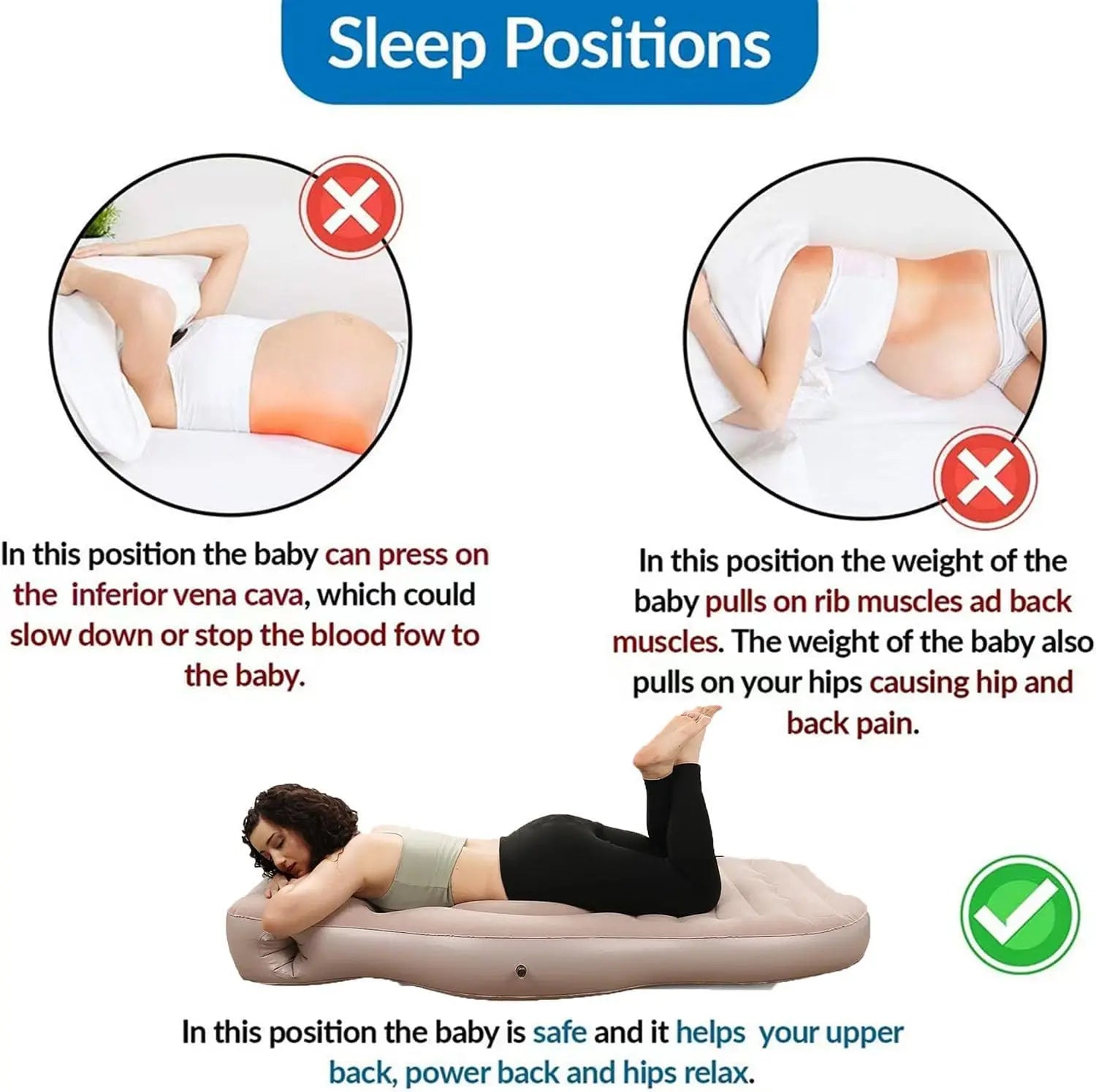 Discover restful sleep during pregnancy with this innovative inflatable maternity pillow designed specifically for expectant mothers. The strategically-placed belly hole eliminates pressure on your growing bump, allowing you to sleep comfortably in your preferred prone position without compromising support. Full-body cushioning cradles your entire frame—from head to knees—reducing strain on your back, hips, and joints during this transformative time. The adjustable inflation lets you customize firmness to match your changing body throughout each trimester. Lightweight and portable, this maternity airbed travels easily, ensuring comfort whether you're at home or away. Give yourself the pregnancy sleep solution you deserve.